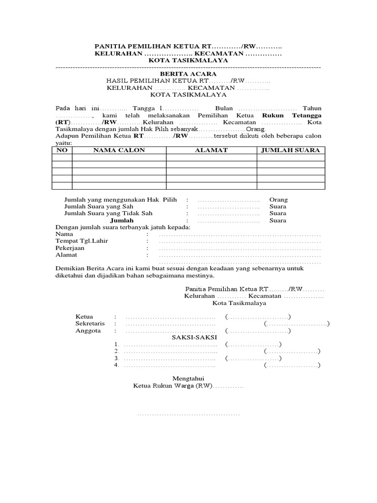 Surat Berita Acara Pemilihan Rt. / Contoh Surat Berita Acara Hasil Pemilihan Ketua Rt Cara Cute766 - Contoh surat undangan pemilihan rt have an image from the other.contoh surat undangan pemilihan rt it also will include a picture of a kind that may be seen in the gallery of contoh surat undangan pemilihan rt.. Contoh surat suara pemilihan ketua rt. Laporan kas rt tgl 12 november 2012; Share embed contoh format berita acara pemilihan ketua rt dan rw docx please copy and paste this embed script to where you want to embed. Gambar.trustnews.id posted by unknown on monday, july 21, 2014 pemungutan suara dan perhitungan suara pemilihan kepala desa lantawonua panitia pemilihan kepala desa melaksanakan rapat pemungutan suara. Surat suara pemilihan rt 03.